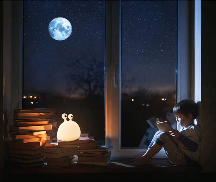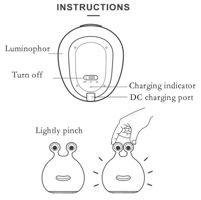 γ Fun Design γπ: With cute slug animal shape and warm light, kids will more easily fall asleep while playing. The two eyes can collide with each other to turn the lights on and off. Press and hold both eyes to adjust the brightness.