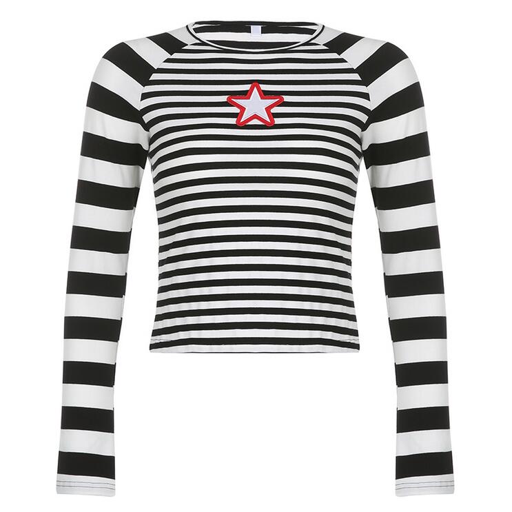 80S Vintage Star Stripe Long Sleeve T-shirt