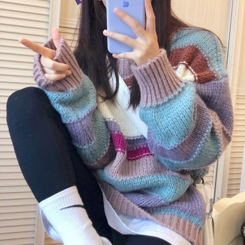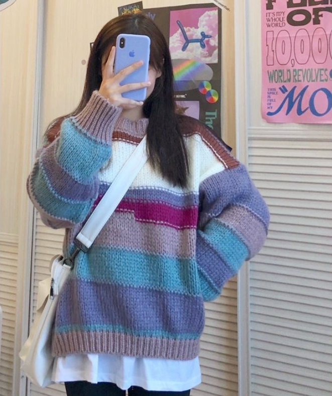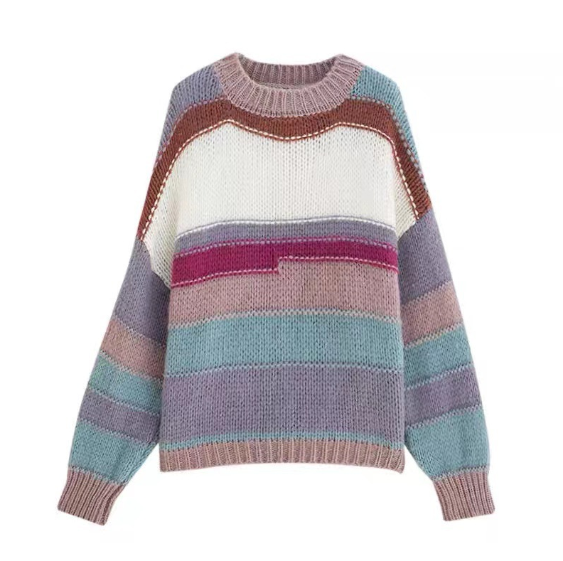 Rainbow Color Block Patchwork Knit Sweater
