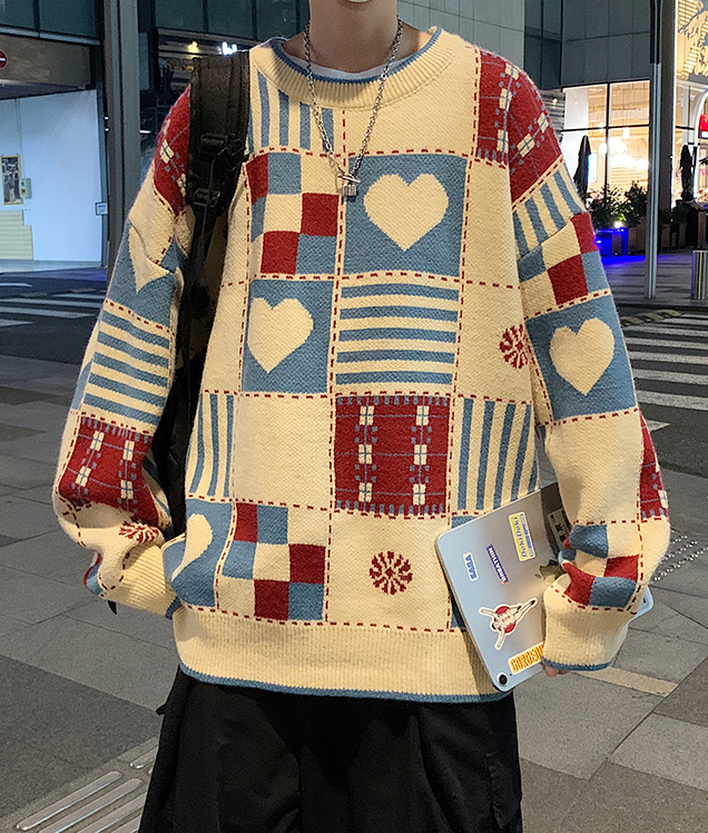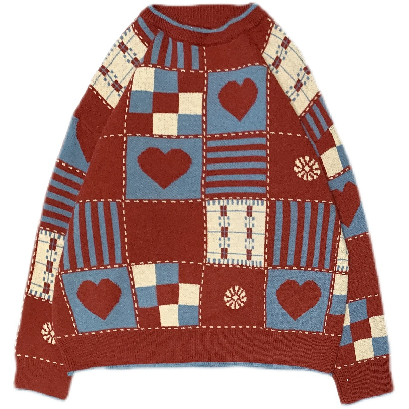 Patchwork Heart Color Block Knit Sweater