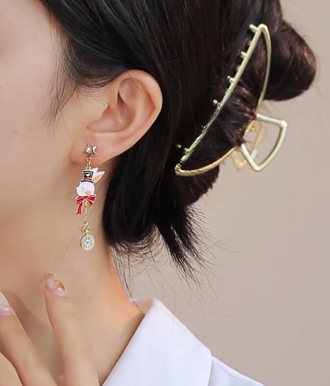 Cute Poker Bunny Rabbit Pearl Dangle Drop Earrings