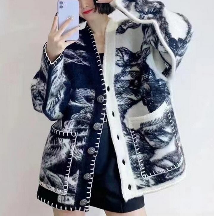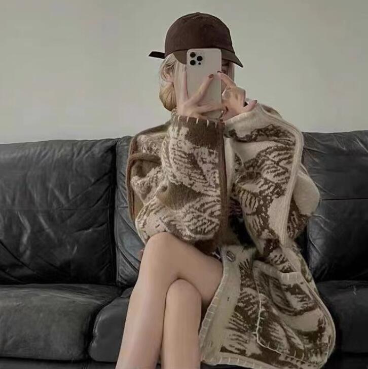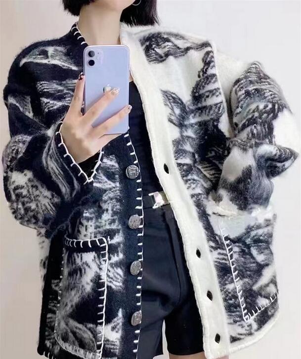 V-neck Color Block Jacquard Knitted Cardigan
