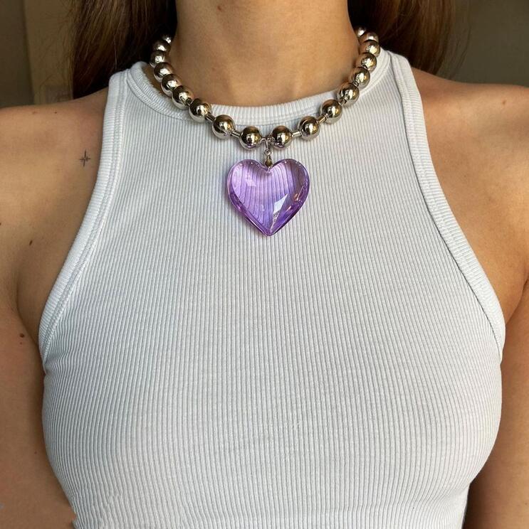Colorful Transparent Heart Bead Necklace Chocker