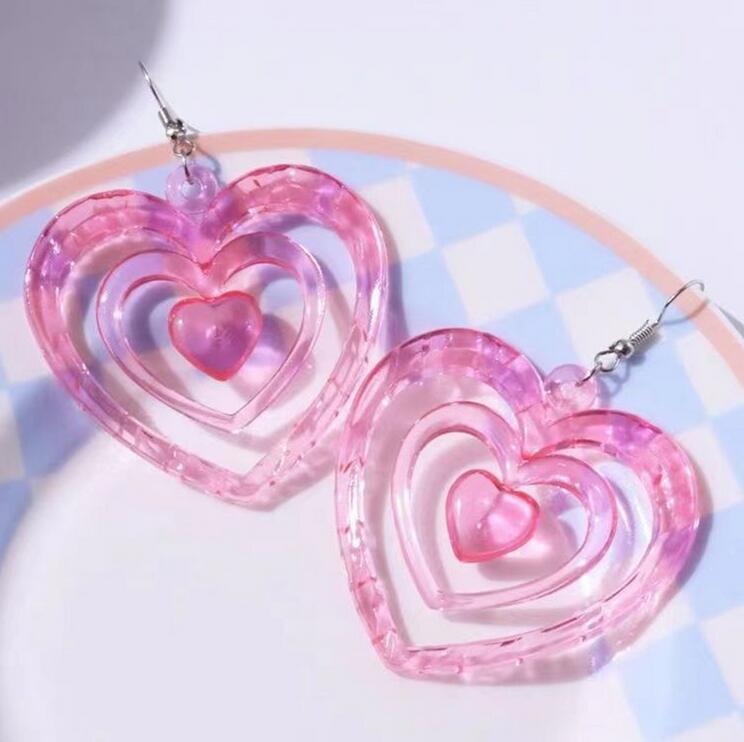 Y2K Neon Pink Heart Dangle Drop Earrings