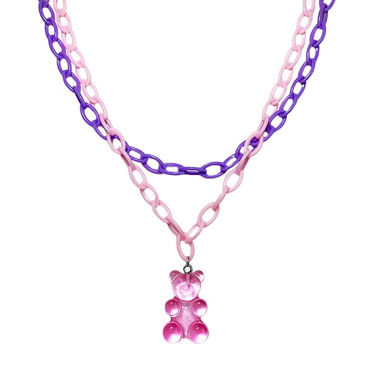 Pastel Pink Purple Bear Pendant Layered Necklace Choker