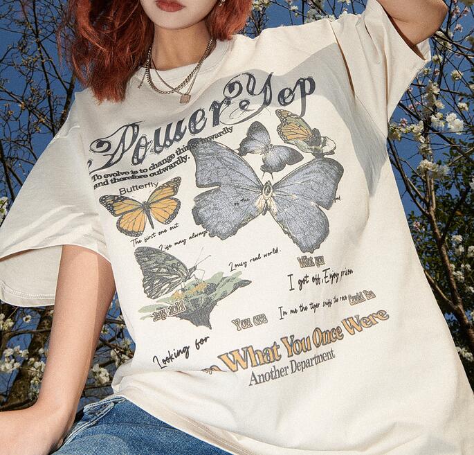 Vintage Butterfly Print Oversize Tee