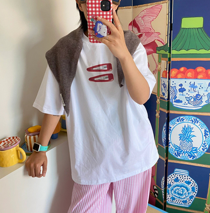 Hair Clips Print Short Sleeve Tee