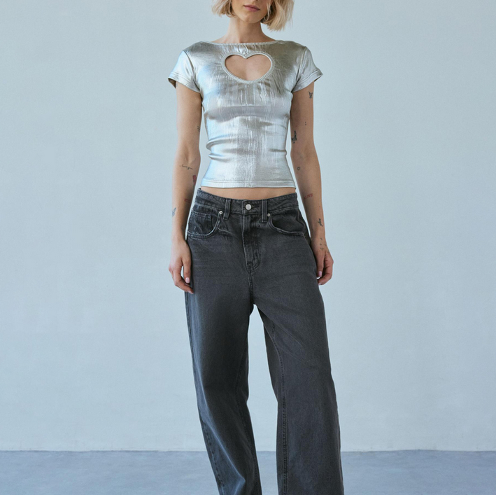 Siliver Metallic Cut out Heart Top