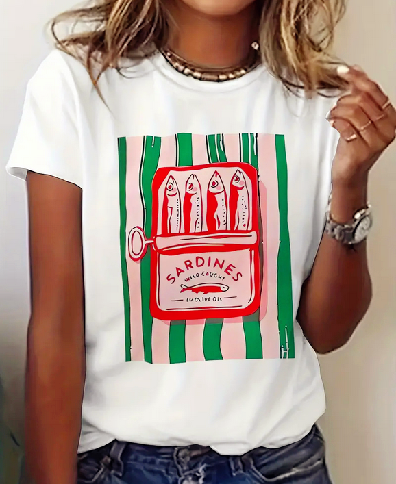 Canned Sardines Stripe Printed Tee