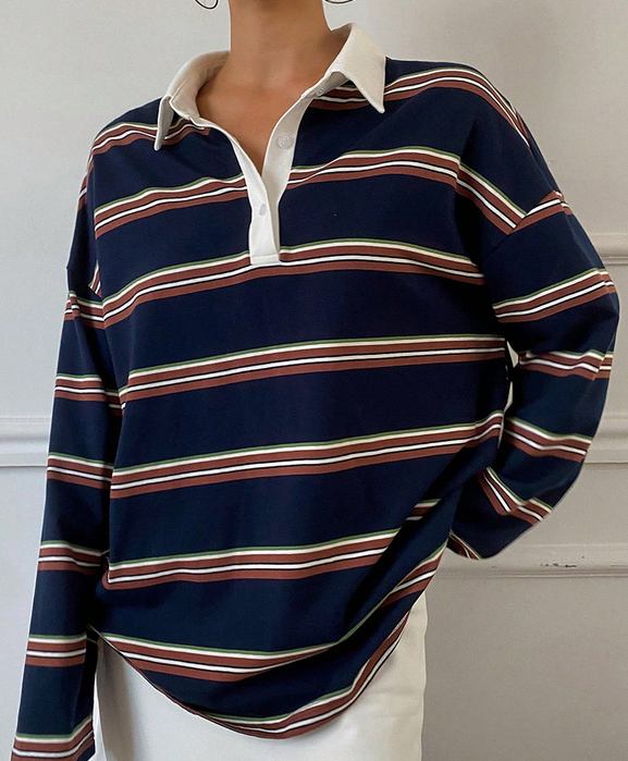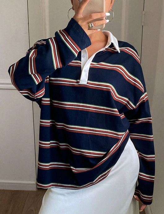 Vintage Stripe Long Sleeved Polo Shirt