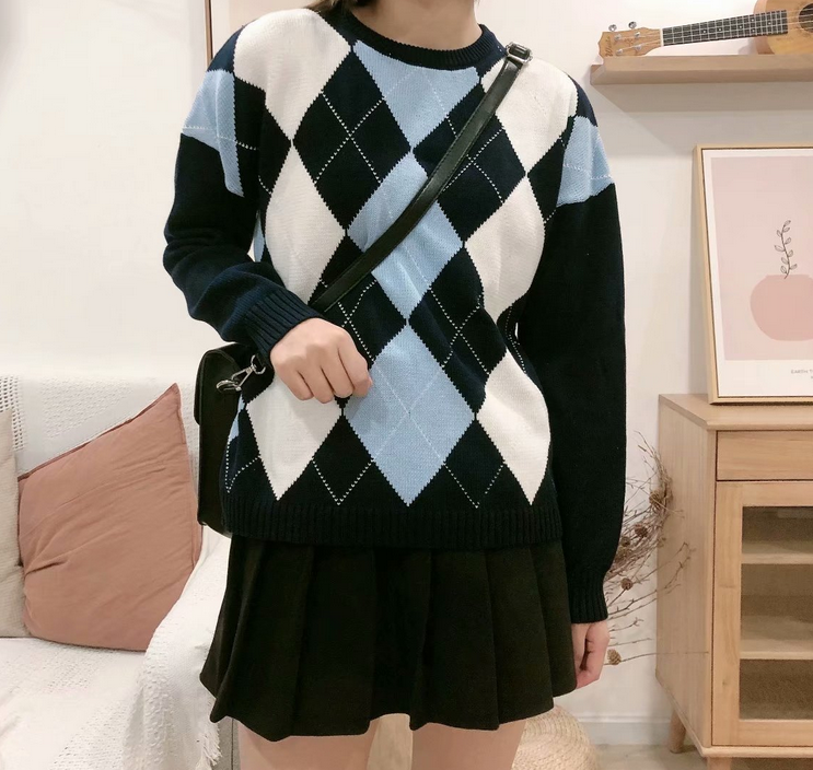 Argyle Patchwork Pullover Knit Sweater Jumper
