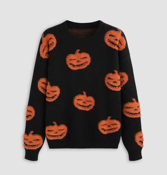 Halloween Pumpkin Jack-O-Lantern Jacquard Pullover Knit Sweater Jumper