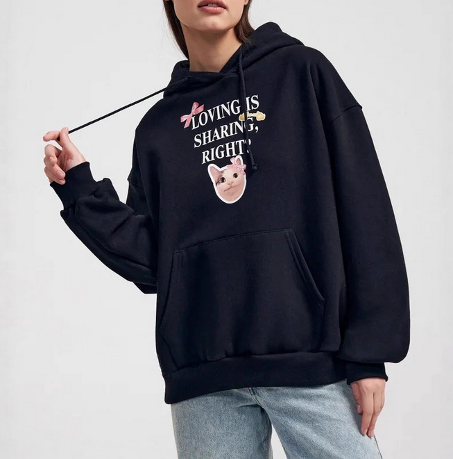 LOVING IS SHARING RIGHT KITTY HOODIE SWEATSHIRT