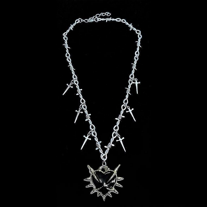 Gothic Heart Thorn Bramble Cross Chain Choker Necklace